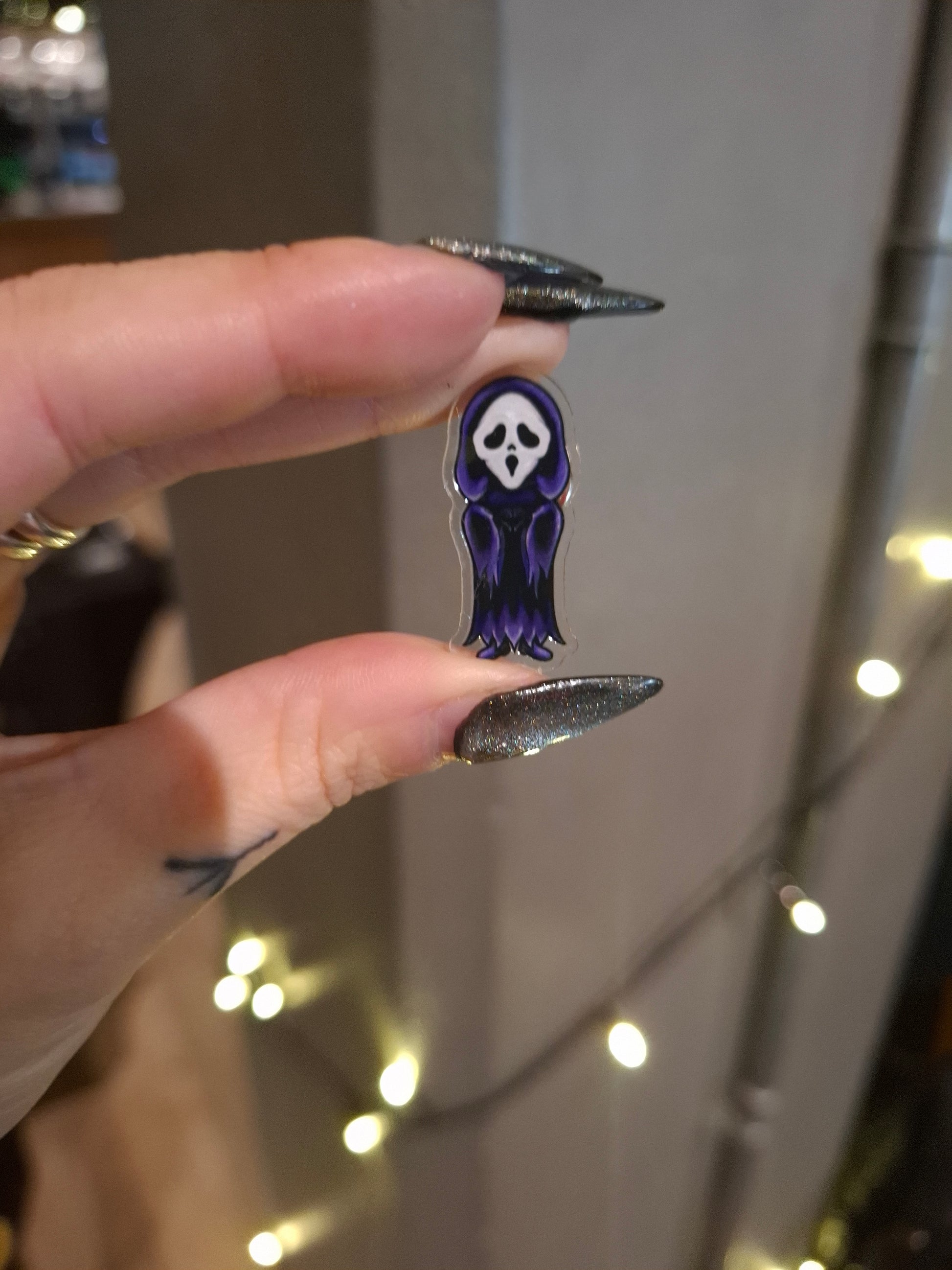 The Ghostface Pin Badge is a must-have for horror enthusiasts. Made with clear acrylic and featuring a classic horror icon image designed by our talented collaborators, this 3cm badge is the perfect gift for any fan. Add some spooky flair to your outfit with this unique accessory.